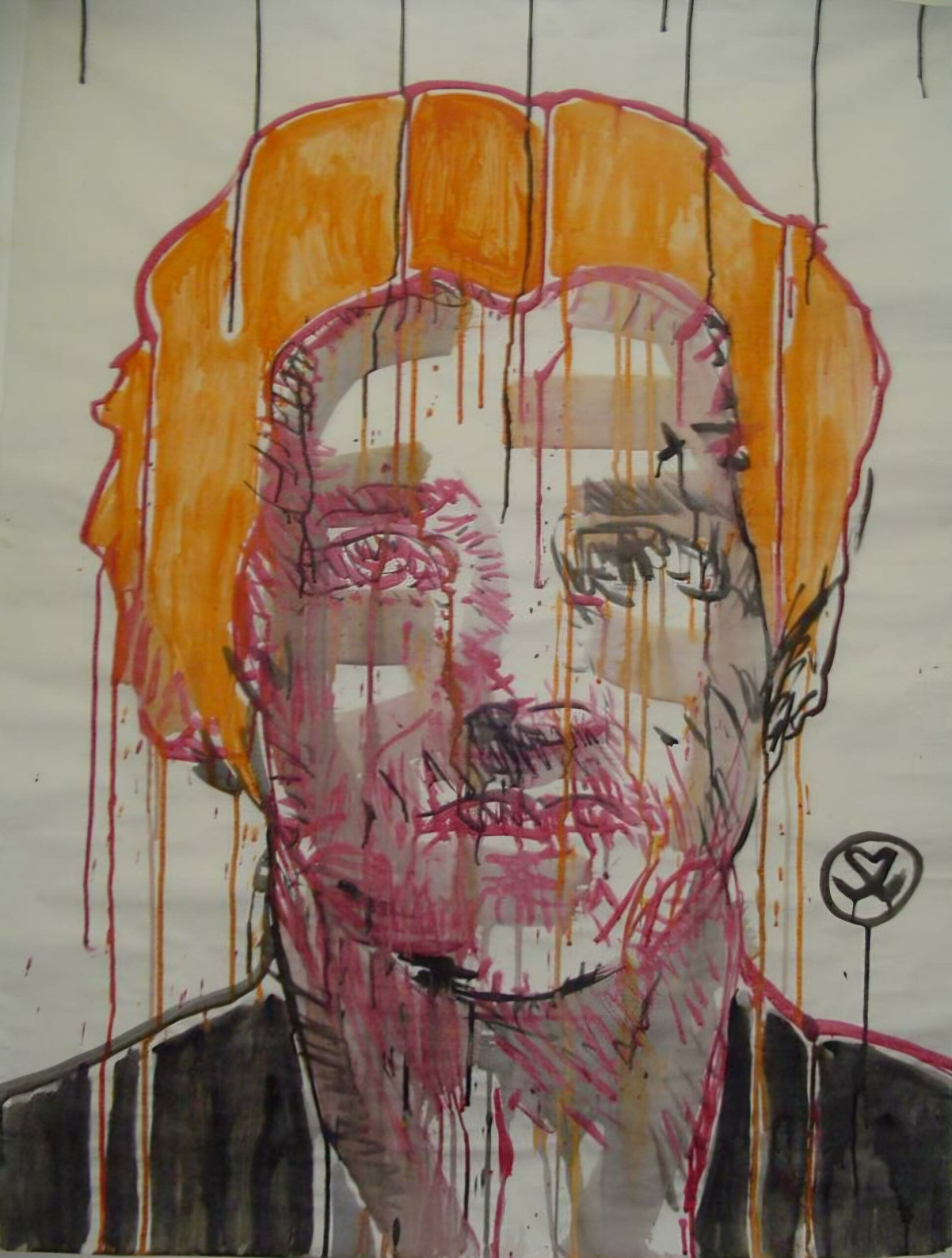 Ma peinture, uniquement figurative, met l’accent sur ce qui échappe à la volonté de l’artiste : la tâche, l’empreinte, la coulure.